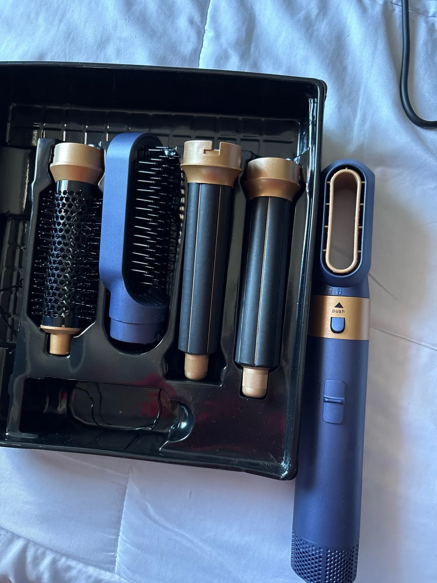Il semble être de bonne qualité, j'ai déjà essayé le sèche-linge et il fonctionne plutôt bien. Je n'ai pas encore essayé les autres embouts, mais ils ont l'air robustes. Il y a une prise de style américain. La couleur est conforme à celle de l'image.